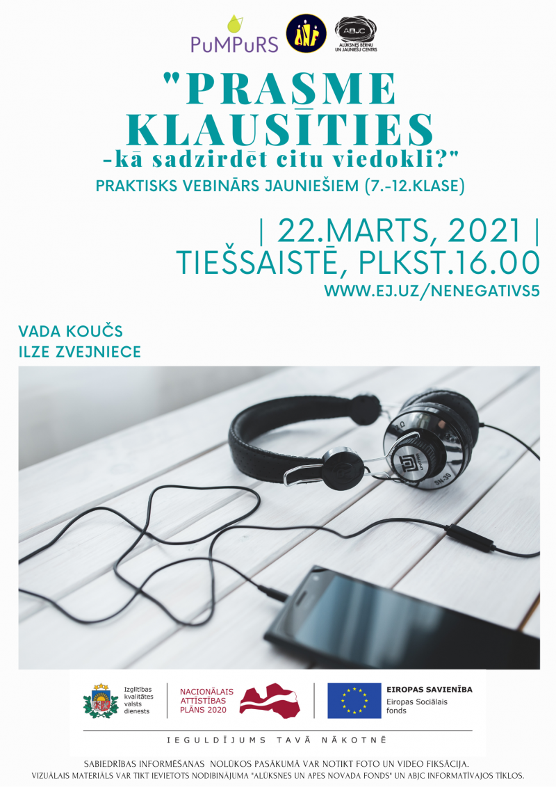 Nodibinājums “Alūksnes un Apes novada fonds” sadarbībā ar Alūksnes Bērnu un jauniešu centru aicina jauniešus (7.-12.klase) uz praktisku vebināru “Prasme klausīties-kā sadzirdēt citu viedokli?”
