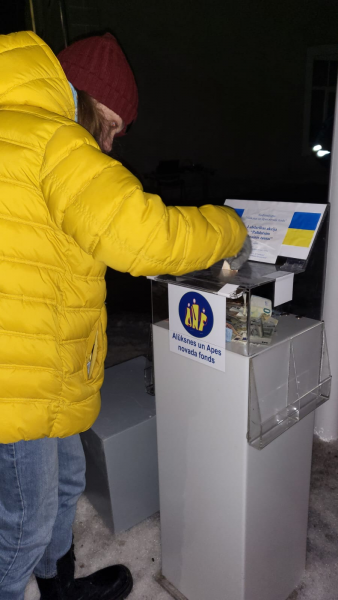 Ziedojumu vākšana notika arī atbalsta pasākumos Alūksnē un Apē, kas pēc Latvijas Pašvaldību savienības aicinājuma trešdienas vakarā vienlaikus notika visā Latvijā. Alūksnē pasākuma laikā saziedoja 1569,79 eiro, bet vēl pirms tam akcijas pirmajā dienā saziedoja jau 2000 eiro! Apē ziedojumu vākšana vēl turpinās, ziedojumu kaste atrodas Apes apvienības pārvaldes pirmajā stāvā.