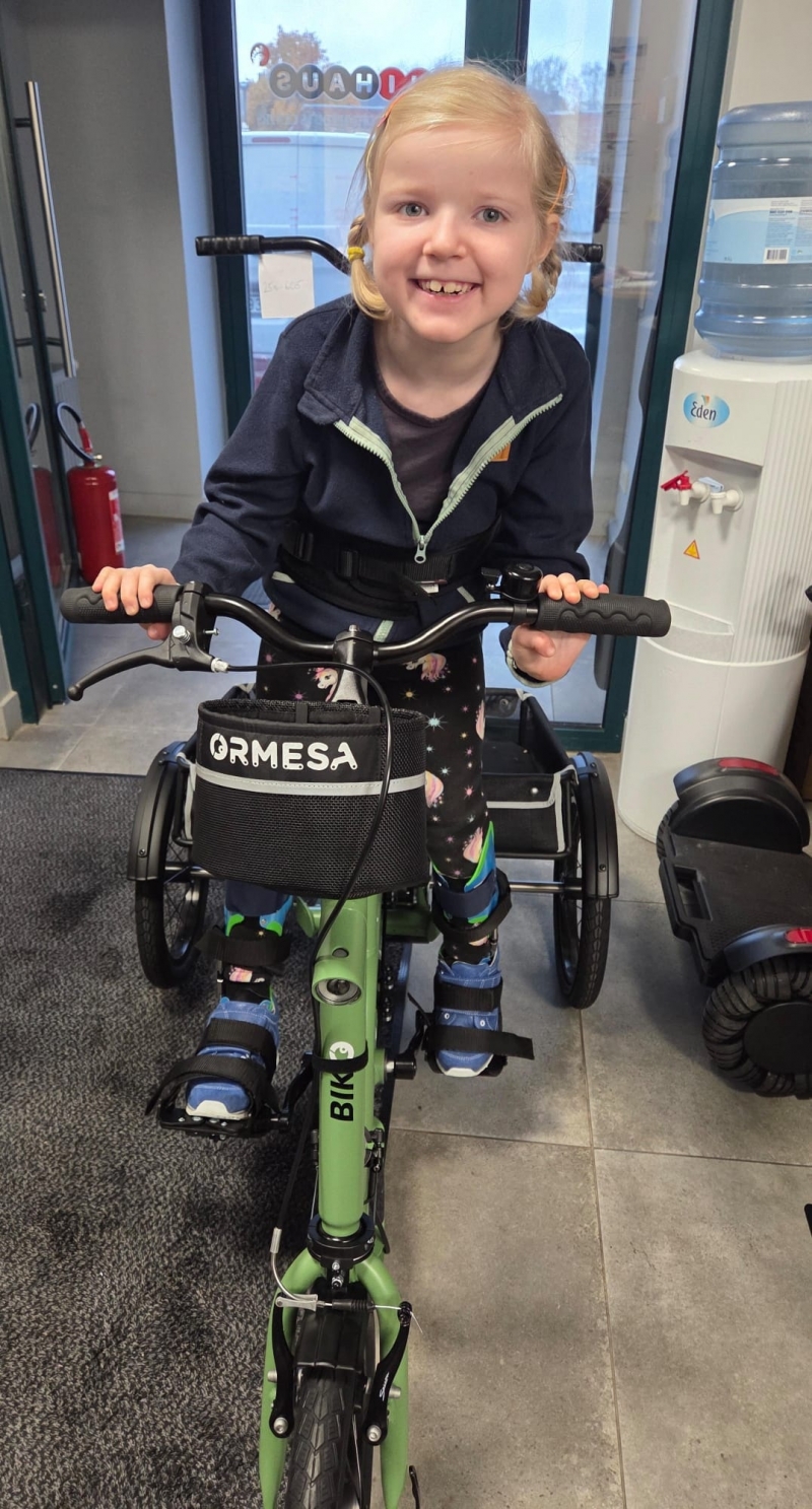 Viņas mamma Gita izsaka visiem sirsnīgu paldies, jo šis velosipēds ir aprīkots ar īpašiem palīglīdzekļiem, kas palīdzēs noturēt stingri Samantas kājas un ceļgalus. Velosipēds palīdzēs attīostīt koordināciju un tas mazajai Samantai, kurai ir kustību traucējumi, ir ļoti nepieciešami!