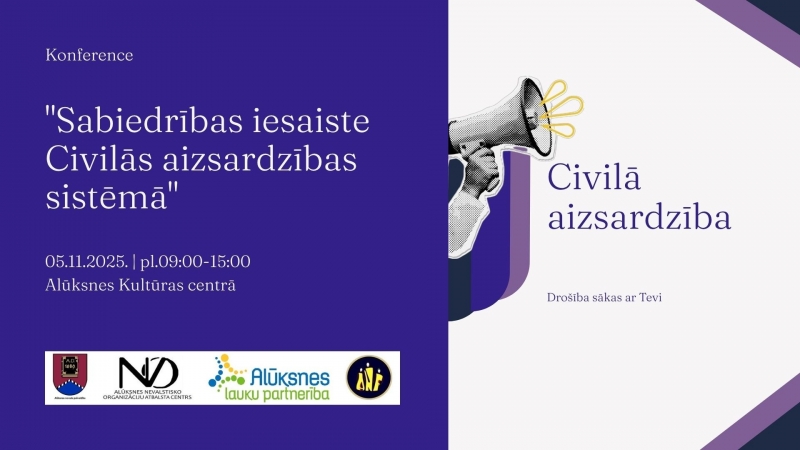 Aicinām Alūksnes novada iedzīvotājus un citus interesentus uz konferenci "Sabiedrības iesaiste Civilās aizsardzības sistēmā".